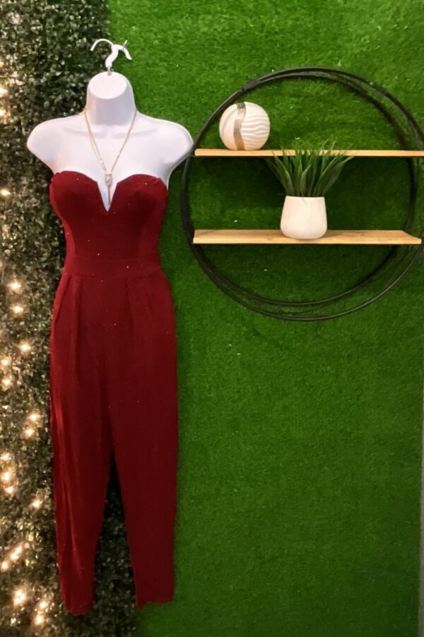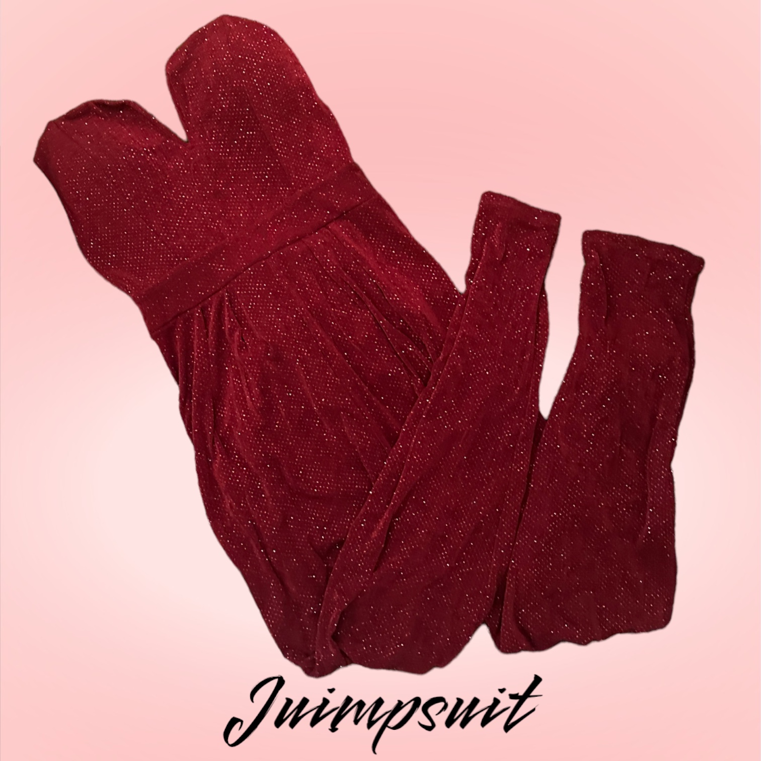 Juimsuit color rojo vino. Strech con zipper en la parte de atras, la tela tiene brillito y en el area del busto tiene goma (para fijar la pieza) que no se baje.